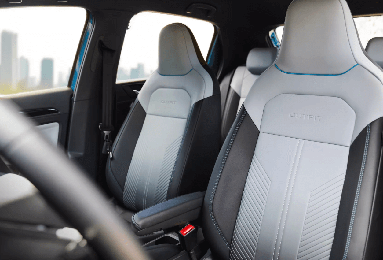 Asientos integrados con tapizado en cuero ecológico exclusivo Outfit, que cuidan tu postura y realzan la experiencia a bordo.